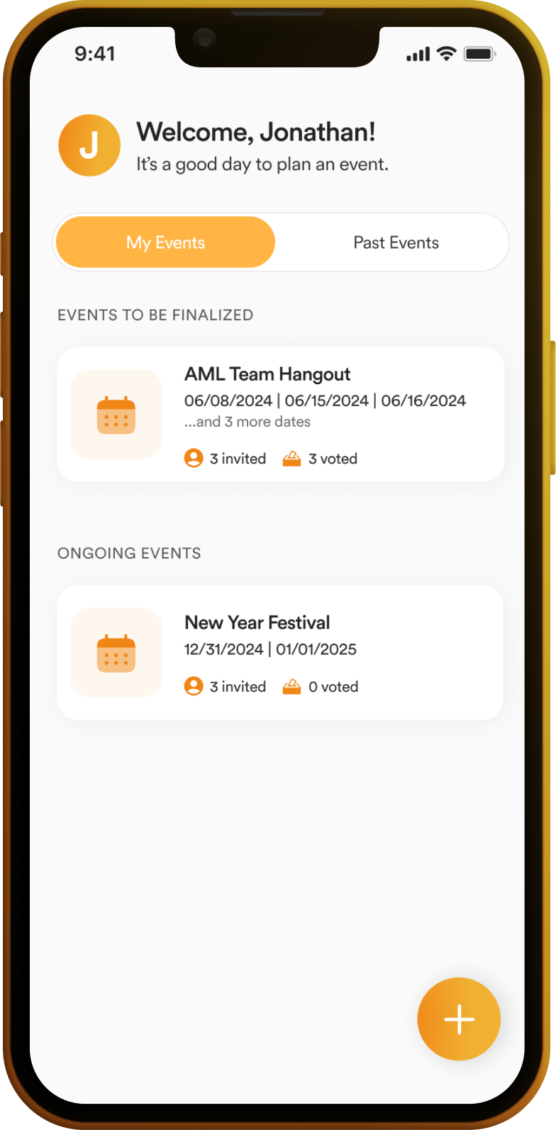 Create events, invite participants to vote on the best date, and finalize your event details within 48 hours.